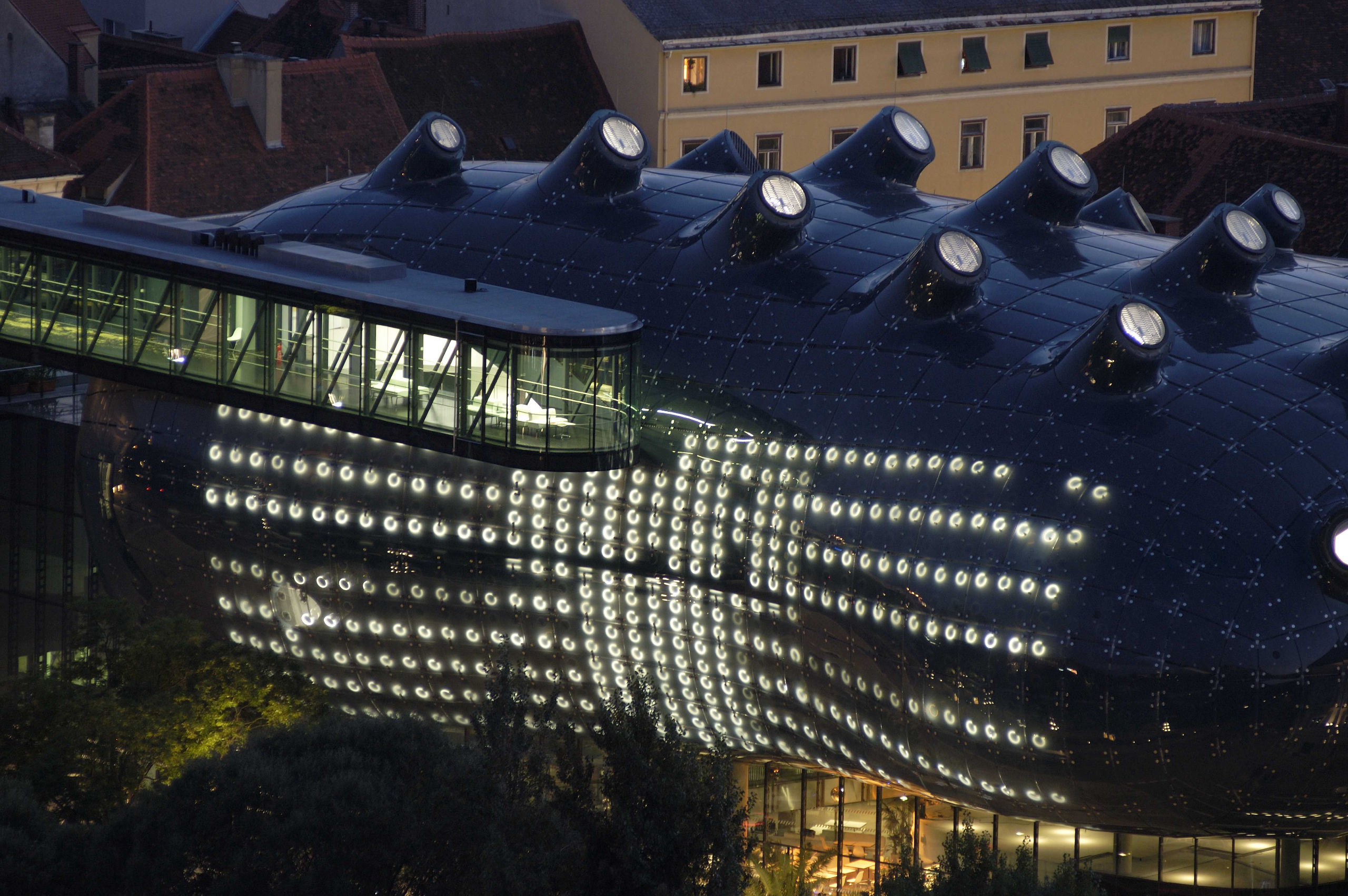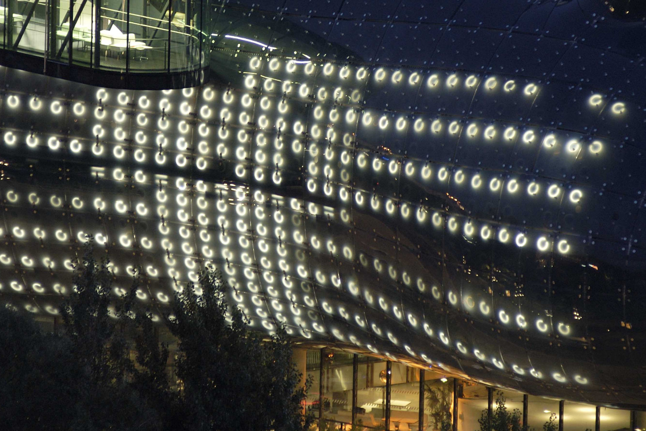 The BIX Facade at Kunsthaus Graz displaying LIA’s interactive installation (2004).