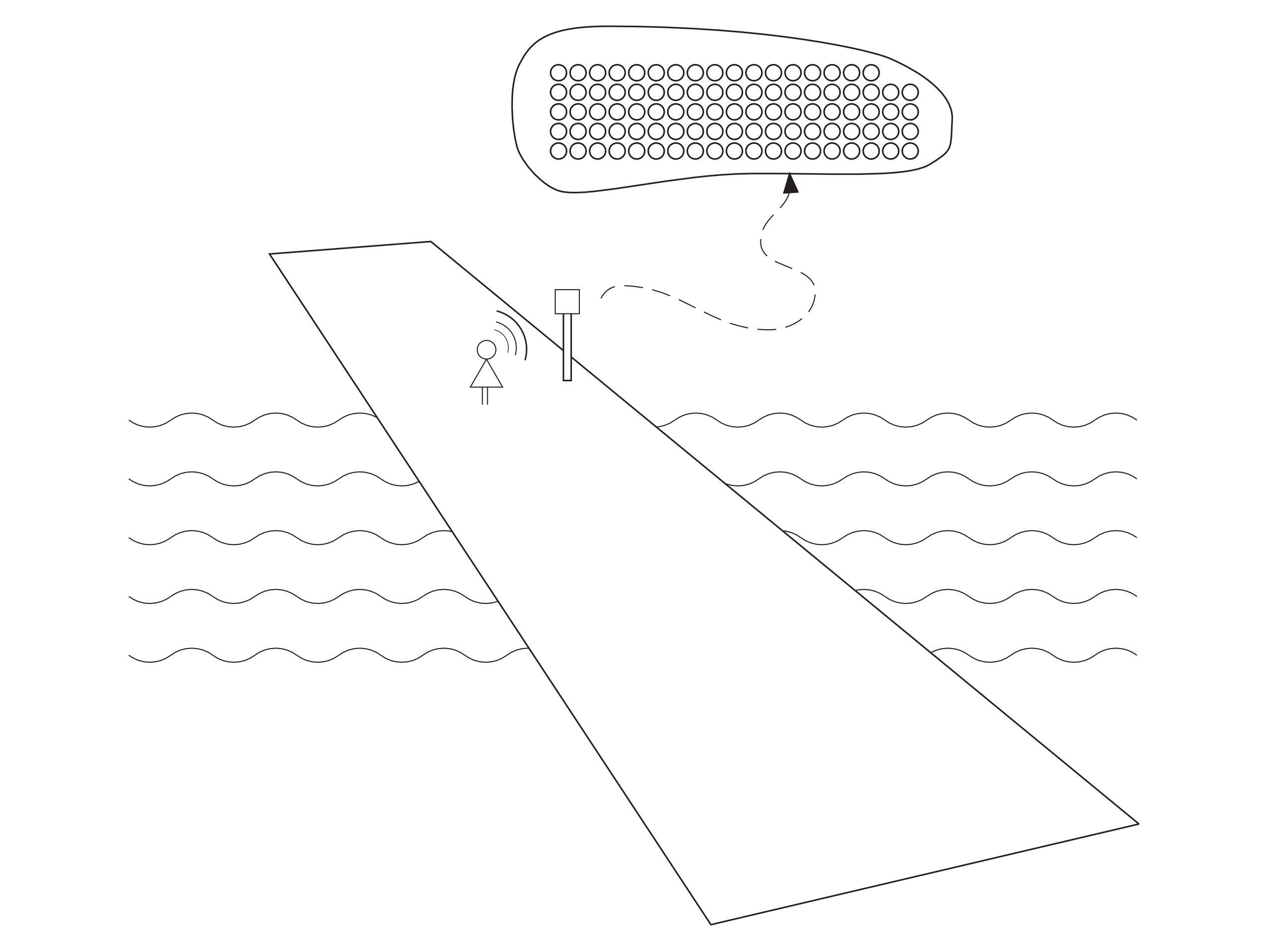Left: The custom microphone unit installed on the Hauptbrücke. Right: Drawing of the wireless audio transmission system.