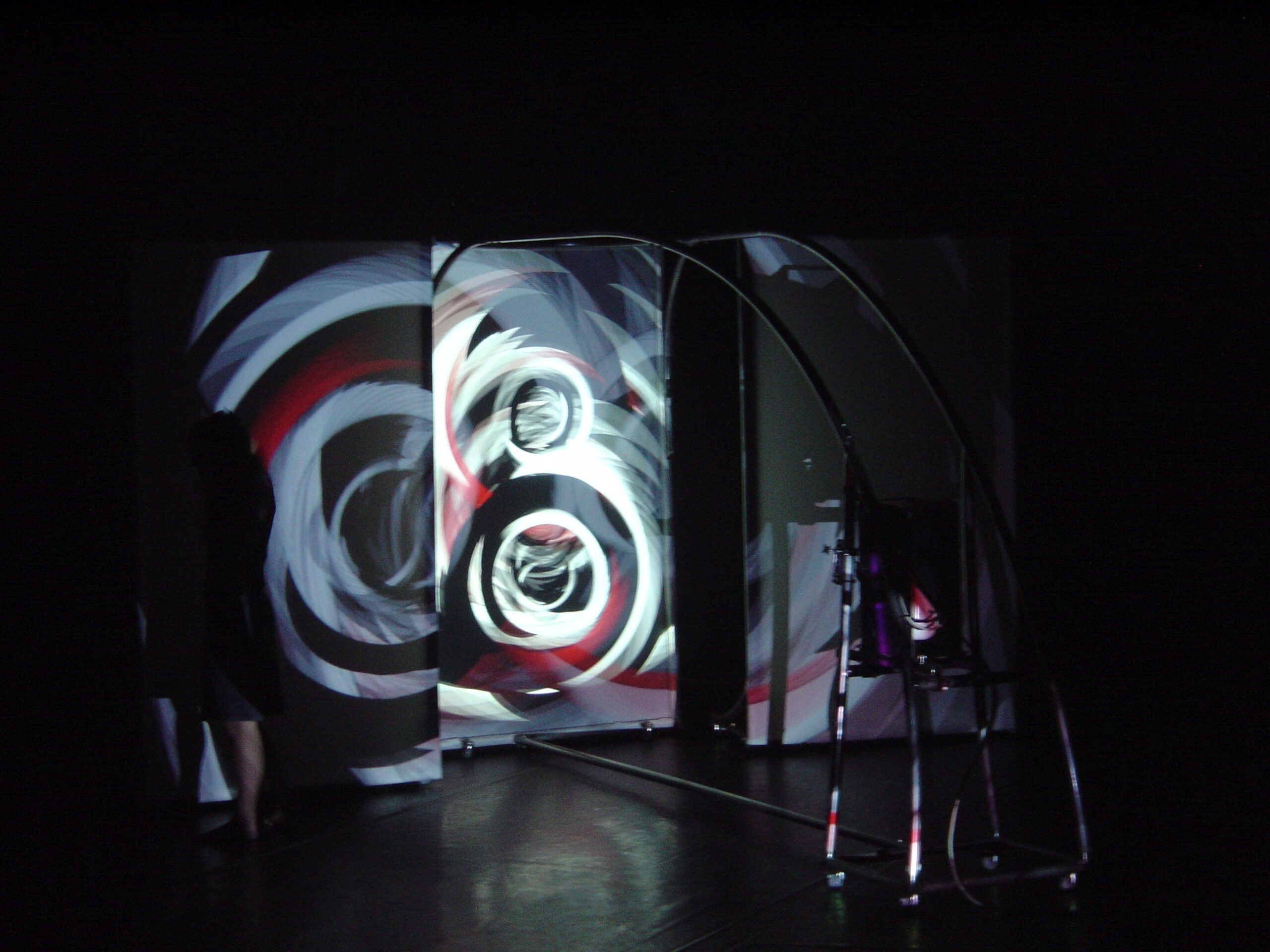 Go With The Flow is a contemporary dance performance featuring a custom generative visual system created by LIA. The visuals were projected onto three vertical, mobile screens that were physically manipulated by the dancers throughout the piece, acting as dynamic architectural elements and partners in the choreography.