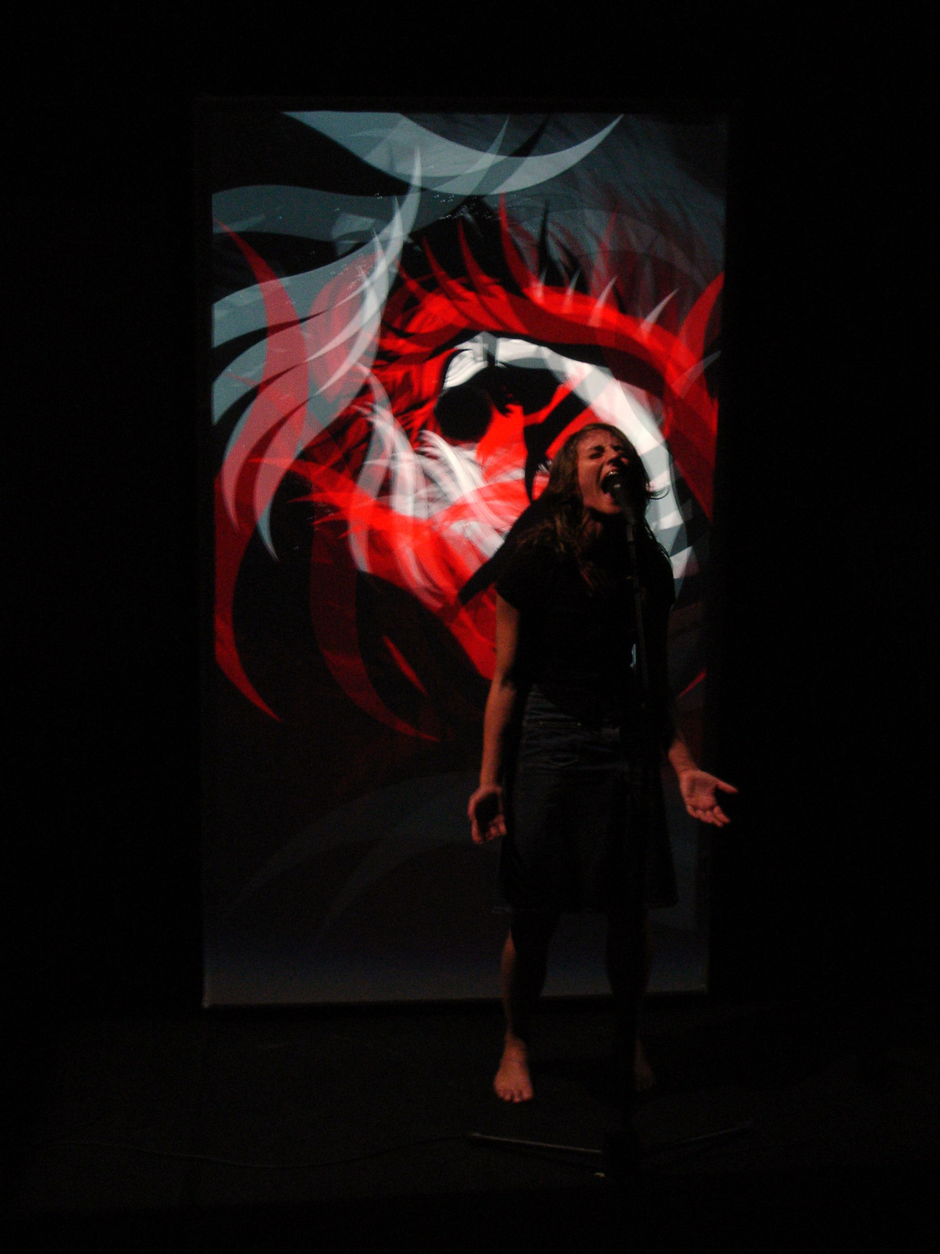 The software analyzed live audio input from the stage to drive the visual forms. During the premiere, LIA performed live using a computer and mixing console to modulate the parameters in real-time, responding directly to the sonic intensity – such as the chaotic structures triggered by a performer’s scream.
