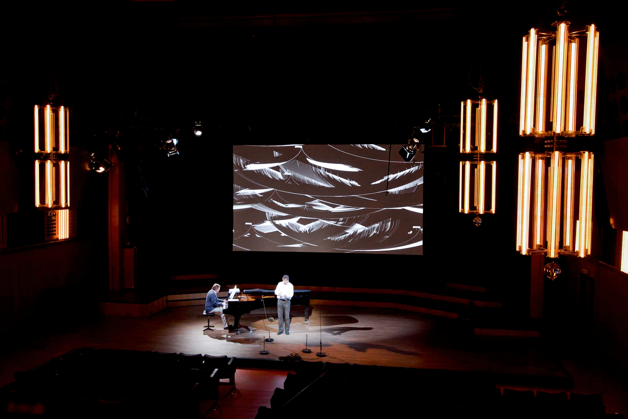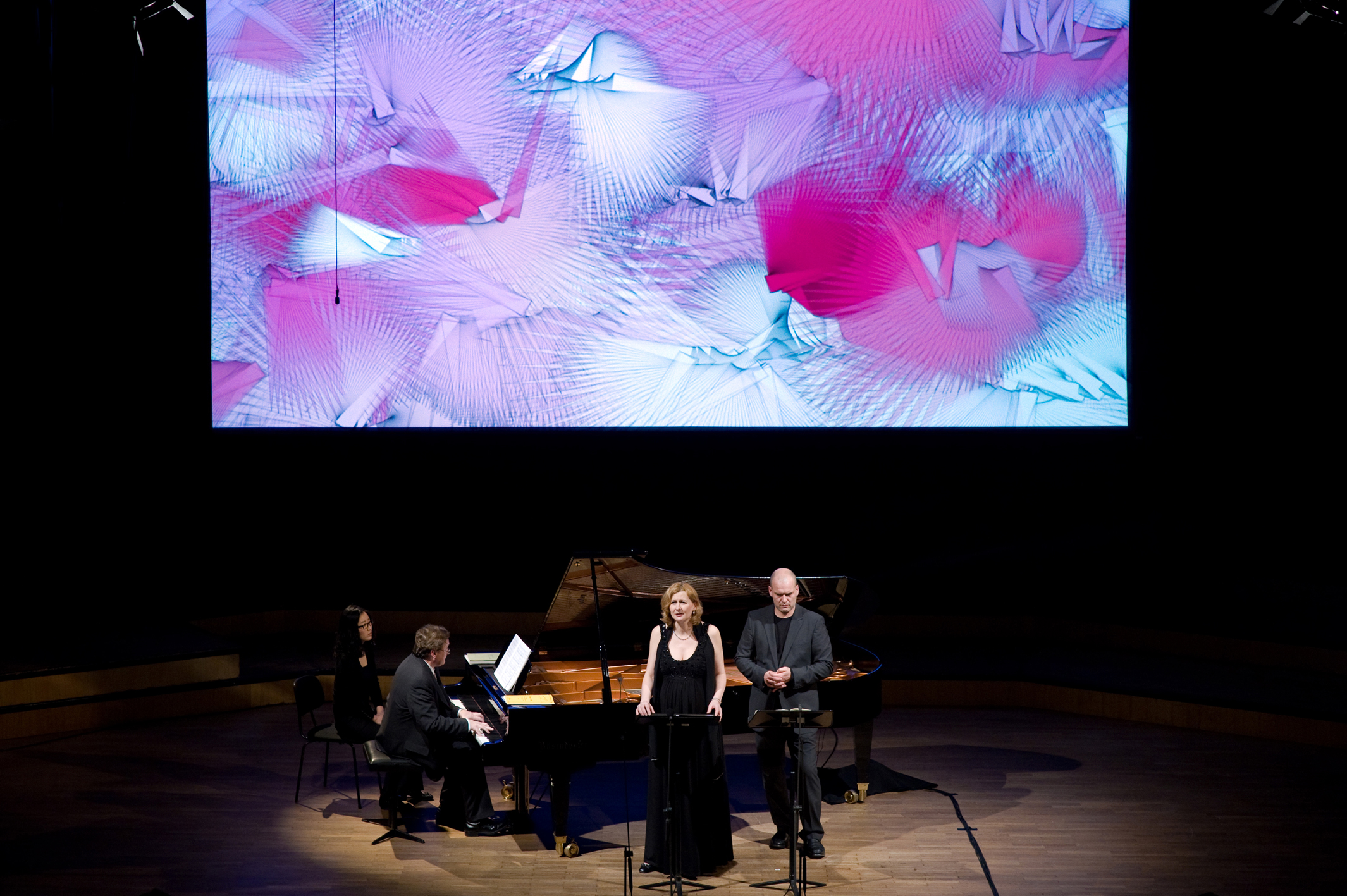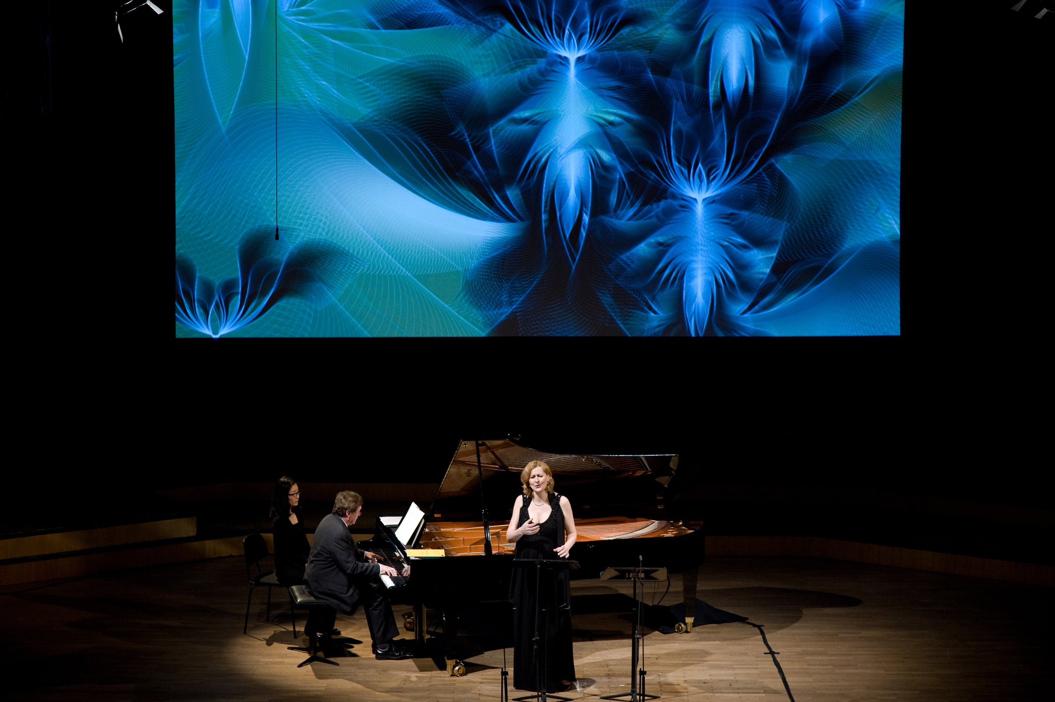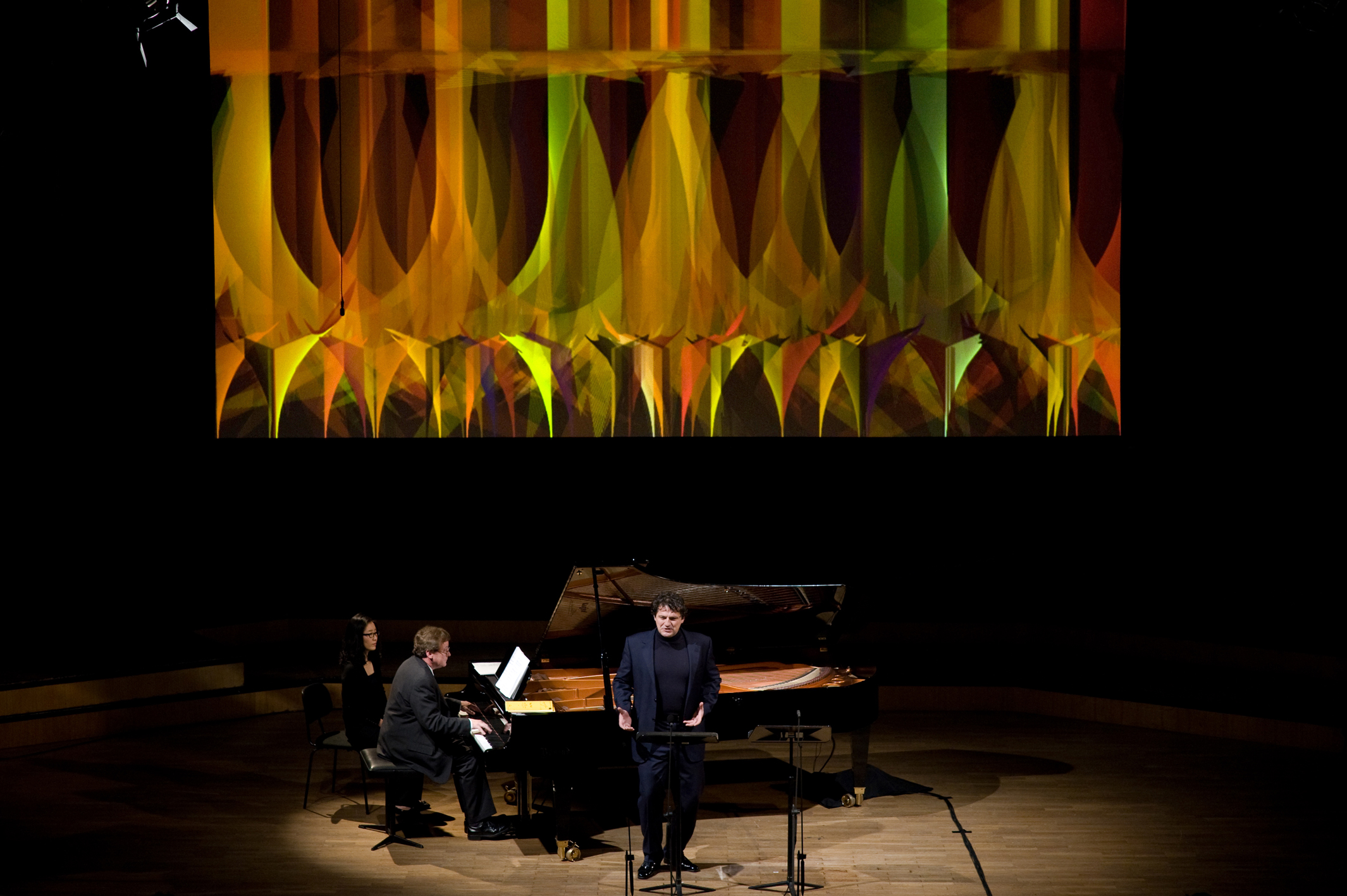 The software was designed to react to the live audio input while allowing for real-time parameter manipulation. The visuals were performed live alongside pianist Russell Ryan and vocalists including Hermine Haselböck, Bernhard Berchtold, Florian Boesch, Wolfgang Holzmair, and Alexander Kaimbacher. Both cycles were subsequently recorded and released as part of the Hugo Wolf and Gustav Mahler Collector’s Editions.