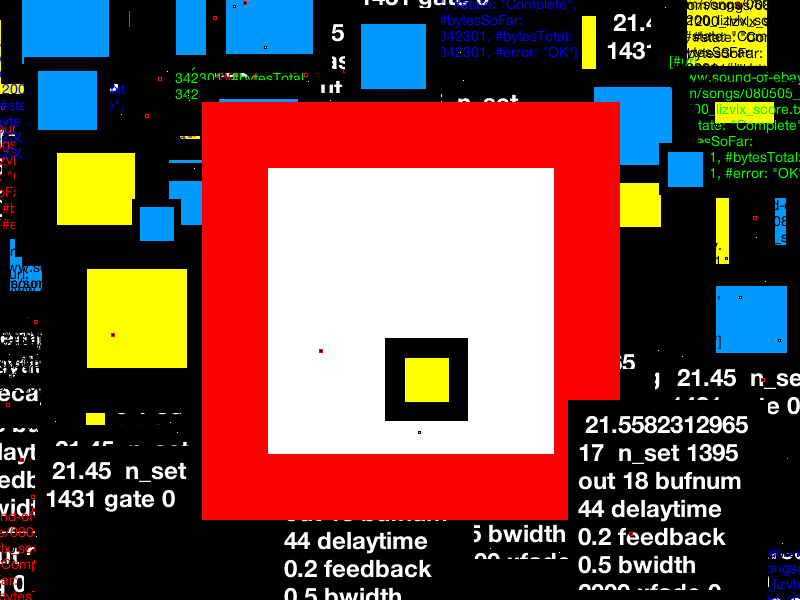 The sound is cool, the machine produces masses of songs and replicates millions of times throughout the networks – flooding the net, a bubbling sea of artifical songs visualized in CONTEMPORARY teletext – a continental drift within a macromusic universal urban scape. Trash-Radio.