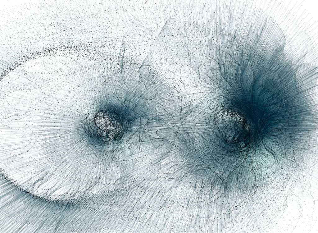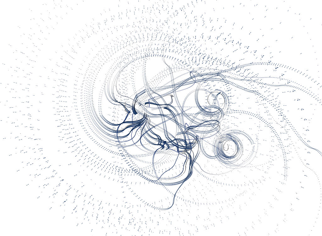 Created in 2003, WithoutTitle was commissioned by Processing.org for the platform’s exhibition section. The work is an interactive generative system where participants influence line-based elements. Mouse movement controls the position and movement of the lines, while two keyboard keys (‘a’ and ‘f’) are used to adjust their length.
